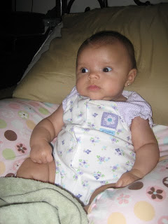 January 7th comes around and we are again on the way to a medical appointment. This one had a catch though. Bella was not allowed to eat for 4 hours before the appointment, which if you know Bella she likes to eat every 3 hours! They wanted her hungry because she had to drink some very nasty white stuff that is reflective for the test. So she stays up until 2:30am and only eats 2 ounces at that time. 6:30am rolls around and she is mad as a hornet because she is hungry and wants to eat. We hurried and got dressed, me while Chelo was holding her and Chelo while I was holding her. Then we jumped in the car hoping the car ride would lull her to sleep until her appointment at 8:30am. IT WORKED! She fell asleep in the car and we arrived at the hospital at 7:53am. Thankful that they were running ahead of schedule and called us back almost right away. They proceeded to strap Bella down so they could rotate her to get the films they needed. This included strapping her arms up by her head. She was NOT a happy baby. She was a good baby and ate the nasty white stuff fairly easily so they got the test completed in about 10 minutes and we were able to feed her a real bottle. The lady running the test said everything looked good to her but the doctor would have the results in 3-4 days and would call. Imagine my surprise when they called the same afternoon.